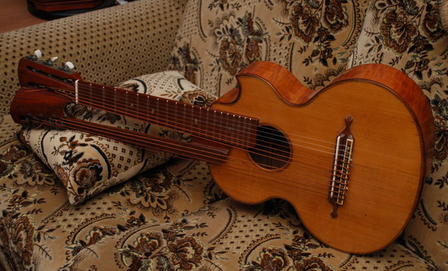 Гитара старинная 11-струнная двугрифовая, кабинетная